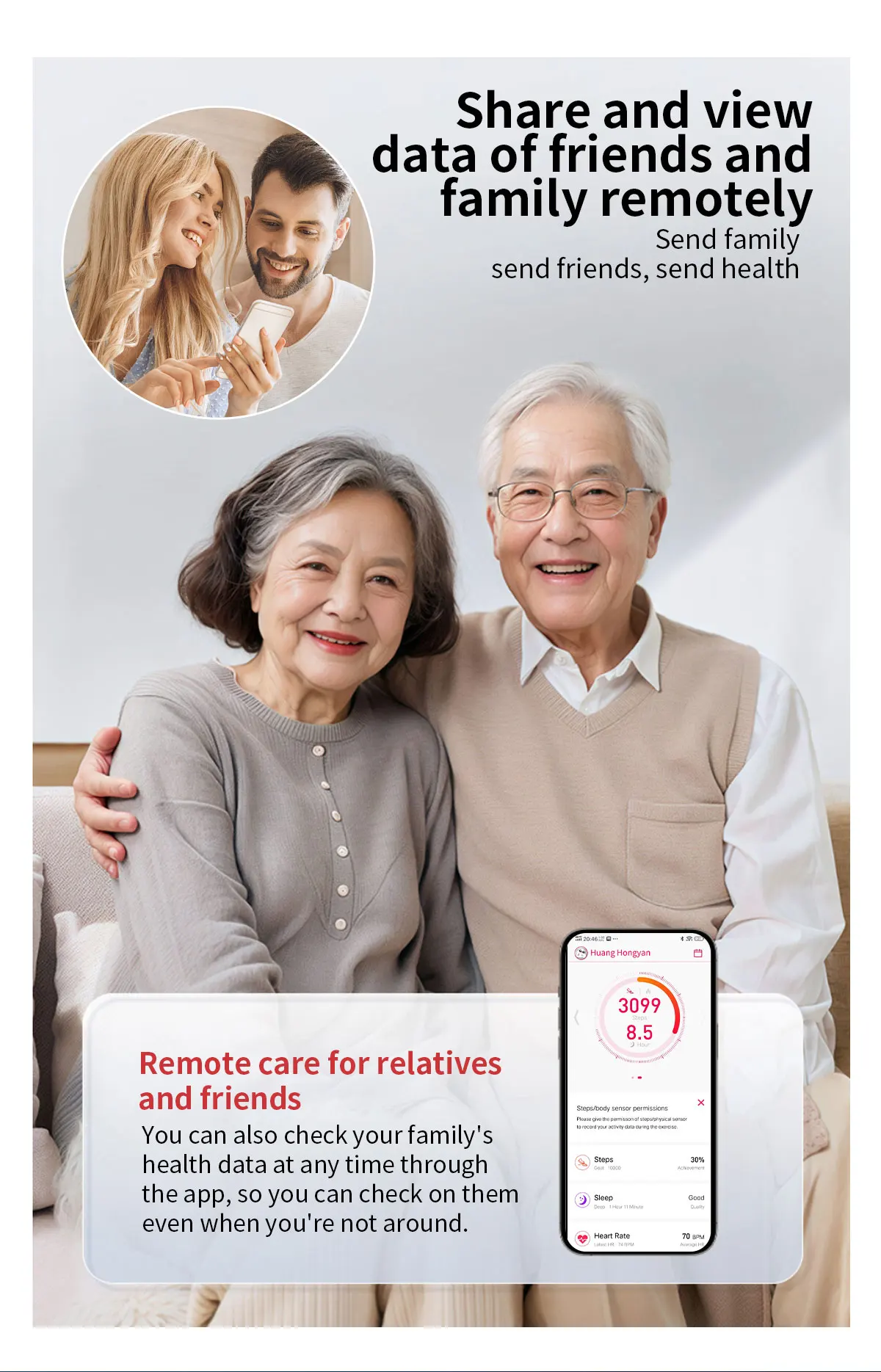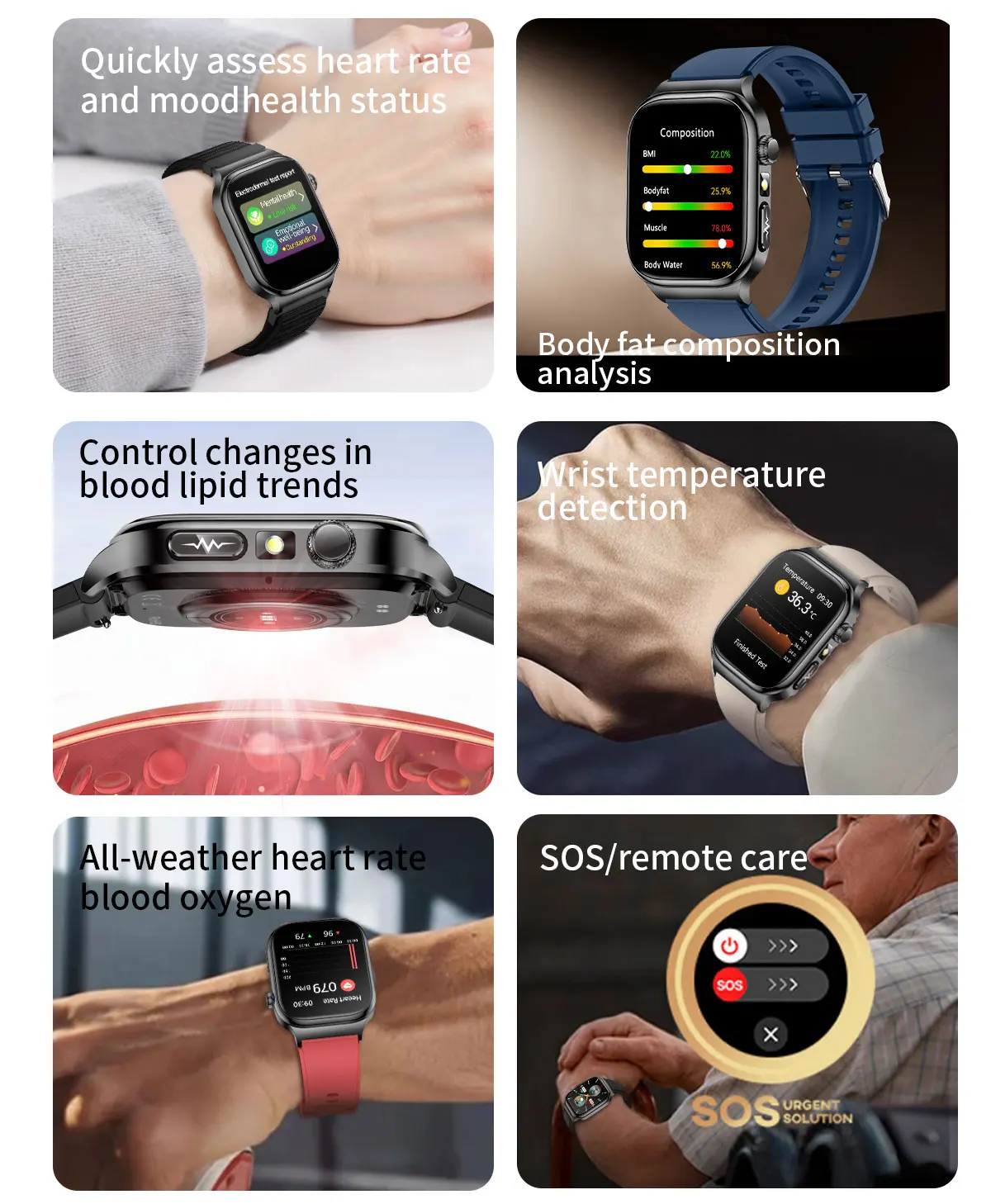 7.Cuidado remoto para familiares e amigos, vários modos esportivos, mostrador personalizado e mercado de vários mostradores