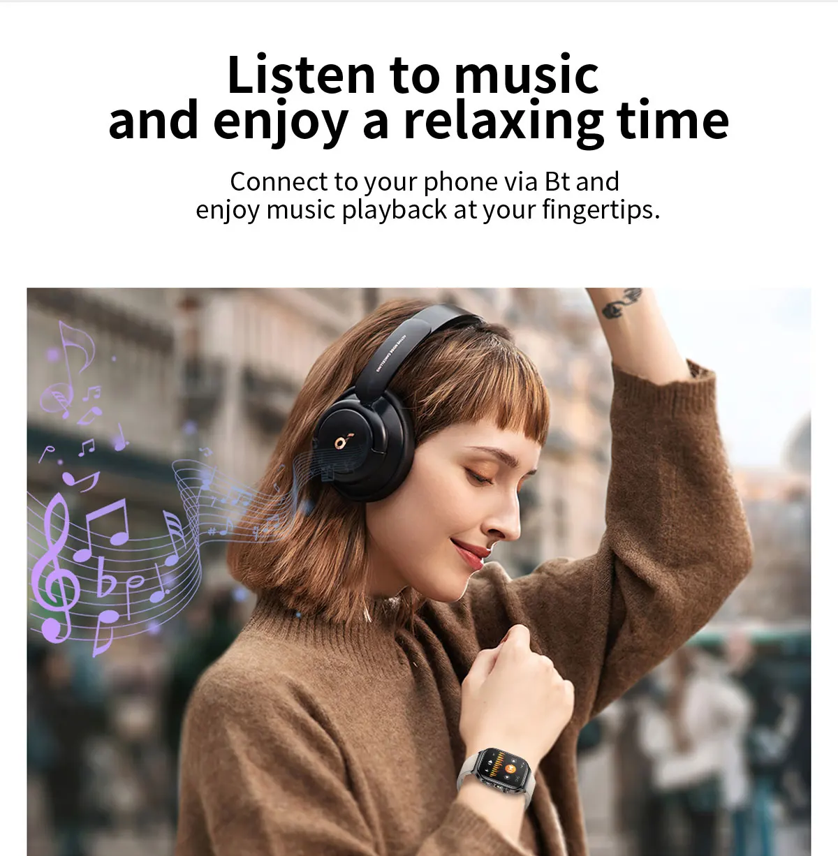 Controle o reprodutor do telefone para pausar as músicas anteriores e seguintes e conecte-se ao aplicativo para reproduzir música no relógio