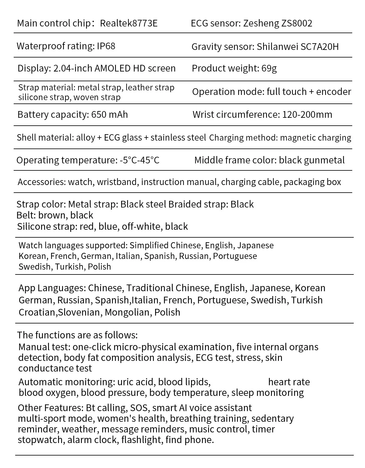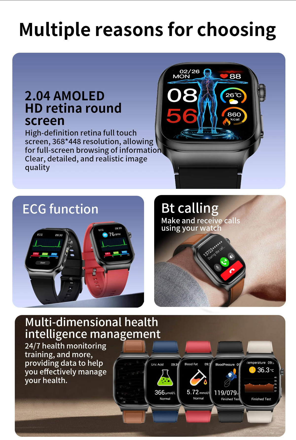 Material de toda a máquina: liga+aço inoxidável+vidro ECG+tela AMOLED de alta definição