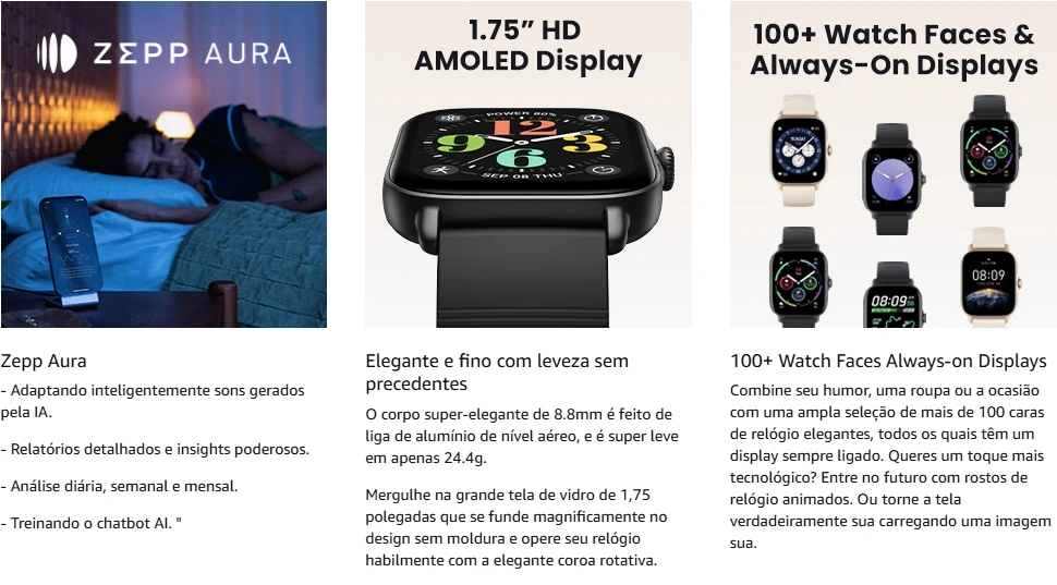Elegante e fino com leveza inigualável: o Amazfit GTS 4 Mini Novo relógio inteligente tem um corpo de relógio super elegante de 8,8 mm é feito de liga de alumínio leve, mas durável de nível aéreo e pesa apenas 24,4 g, enquanto a tela de vidro curva semelhante ao oceano assimila o design sem moldura, para total imersão em seu display. Navegue habilmente pelo smartwatch com a elegante coroa rotativa, pois você se destaca em grande estilo com as confortáveis e respiráveis tiras de silicone, que provam que o smart watch é construído para se mover.